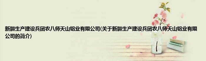 本文关于新疆生产建设兵团农八师天山铝业有限公司的简介就讲解完毕,希望对大家有所帮助。
