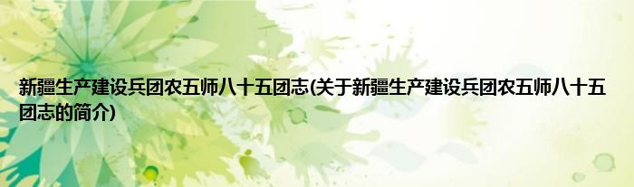 大家好,新疆生产建设兵团农五师八十五团志,关于新疆生产建设兵团农五师八十五团志的简介很多人还不知道,现在让我们一起来看看吧!