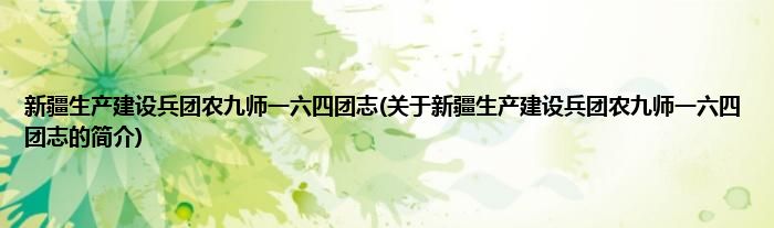 1、 《新疆生产建设兵团农九师一六四团志》是2000年由新疆人民出版社出版的一部作品。