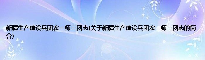 1、 《新疆生产建设兵团农一师三团志》是1996年由新疆人民出版社出版的图书。