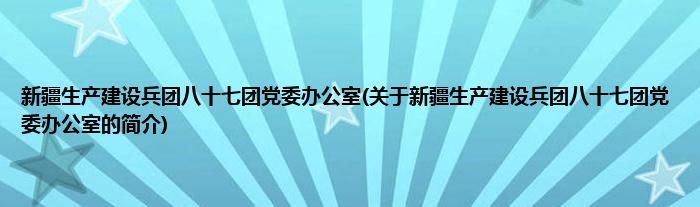 本文关于新疆生产建设兵团八十七团党委办公室的简介就讲解完毕,希望对大家有所帮助。