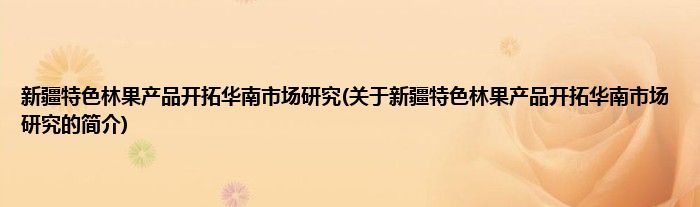 本文关于新疆特色林果产品开拓华南市场研究的简介就讲解完毕,希望对大家有所帮助。