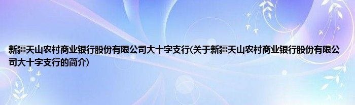 本文关于新疆天山农村商业银行股份有限公司大十字支行的简介就讲解完毕,希望对大家有所帮助。