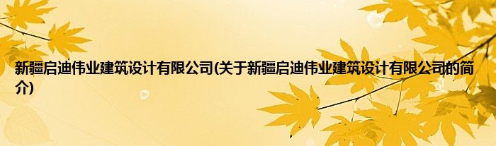 本文关于新疆启迪伟业建筑设计有限公司的简介就讲解完毕,希望对大家有所帮助。