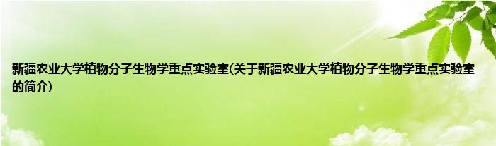 本文关于新疆农业大学植物分子生物学重点实验室的简介就讲解完毕,希望对大家有所帮助。