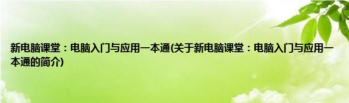 大家好,新电脑课堂:电脑入门与应用一本通,关于新电脑课堂:电脑入门与应用一本通的简介很多人还不知道,现在让我们一起来看看吧!