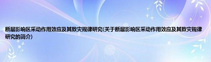 大家好,断层影响区采动作用效应及其致灾规律研究,关于断层影响区采动作用效应及其致灾规律研究的简介很多人还不知道,现在让我们一起来看看吧!