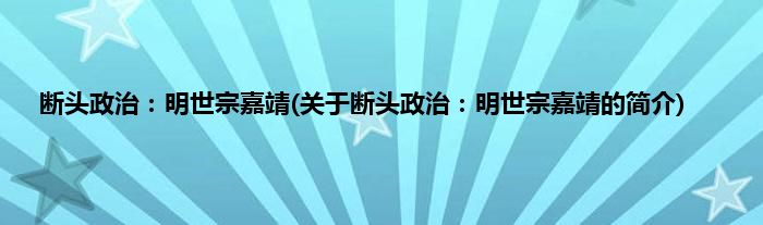 本文关于断头政治:明世宗嘉靖的简介就讲解完毕,希望对大家有所帮助。