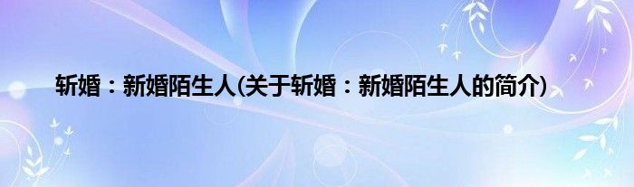 大家好,斩婚:新婚陌生人,关于斩婚:新婚陌生人的简介很多人还不知道,现在让我们一起来看看吧!