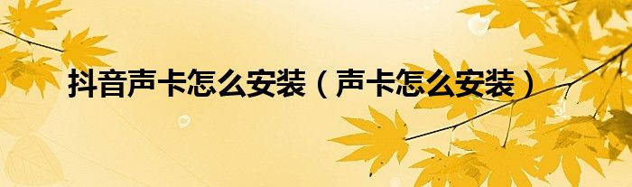 大家好,精选小编来为大家解答以上问题。抖音声卡怎么安装,声卡怎么安装很多人还不知道,现在让我们一起来看看吧!