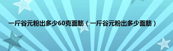 大家好,小科来为大家解答以上问题。一斤谷元粉出多少60克面筋,一斤谷元粉出多少面筋很多人还不知道,现在让我们一起来看看吧!