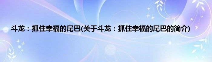 本文关于斗龙:抓住幸福的尾巴的简介就讲解完毕,希望对大家有所帮助。