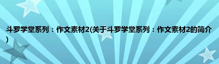 本文关于斗罗学堂系列:作文素材2的简介就讲解完毕,希望对大家有所帮助。
