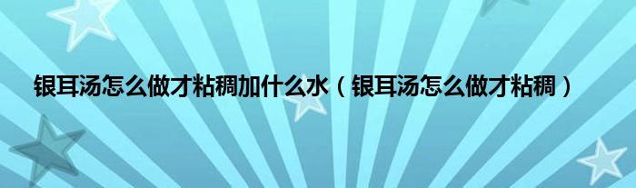 大家好,小科来为大家解答以上问题。银耳汤怎么做才粘稠加什么水,银耳汤怎么做才粘稠很多人还不知道,现在让我们一起来看看吧!
