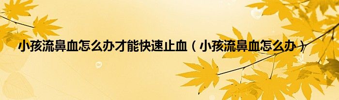 大家好,小科来为大家解答以上问题。小孩流鼻血怎么办才能快速止血,小孩流鼻血怎么办很多人还不知道,现在让我们一起来看看吧!