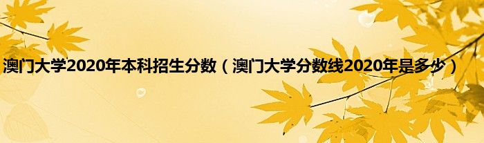 大家好,小常来为大家解答以上问题。澳门大学2020年本科招生分数,澳门大学分数线2020年是多少很多人还不知道,现在让我们一起来看看吧!