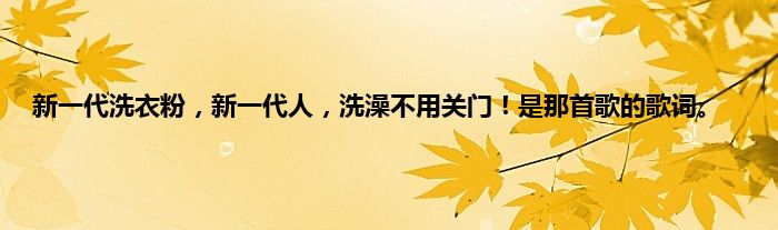 大家好,小常来为大家解答以上问题。新一代洗衣粉,新一代人,洗澡不用关门!是那首歌的歌词。很多人还不知道,现在让我们一起来看看吧!