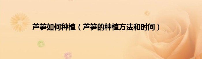 二、 芦笋的种植方法和时间