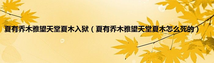 大家好,小常来为大家解答以上问题。夏有乔木雅望天堂夏木入狱,夏有乔木雅望天堂夏木怎么死的很多人还不知道,现在让我们一起来看看吧!