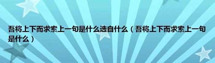 大家好,小常来为大家解答以上问题。吾将上下而求索上一句是什么选自什么,吾将上下而求索上一句是什么很多人还不知道,现在让我们一起来看看吧!
