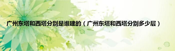 大家好,小常来为大家解答以上问题。广州东塔和西塔分别是谁建的,广州东塔和西塔分别多少层很多人还不知道,现在让我们一起来看看吧!