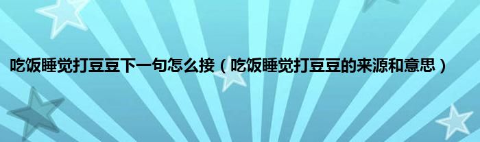 大家好,小常来为大家解答以上问题。吃饭睡觉打豆豆下一句怎么接,吃饭睡觉打豆豆的来源和意思很多人还不知道,现在让我们一起来看看吧!