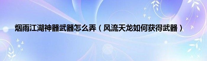大家好,小常来为大家解答以上问题。烟雨江湖神器武器怎么弄,风流天龙如何获得武器很多人还不知道,现在让我们一起来看看吧!