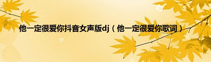 大家好,小常来为大家解答以上问题。他一定很爱你抖音女声版dj,他一定很爱你歌词很多人还不知道,现在让我们一起来看看吧!