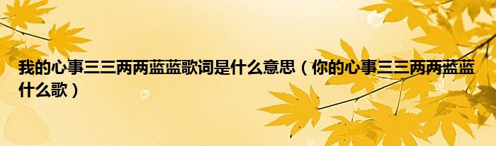大家好,小常来为大家解答以上问题。我的心事三三两两蓝蓝歌词是什么意思,你的心事三三两两蓝蓝什么歌很多人还不知道,现在让我们一起来看看吧!