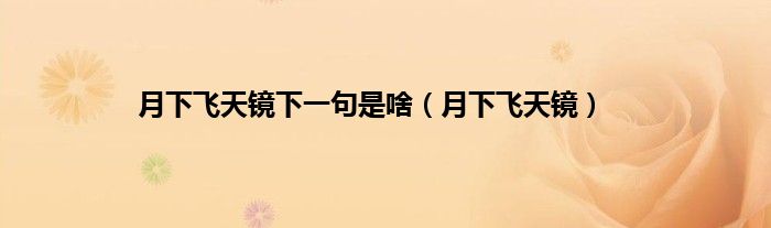 大家好,小常来为大家解答以上问题。月下飞天镜下一句是啥,月下飞天镜很多人还不知道,现在让我们一起来看看吧!