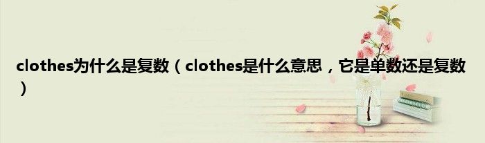 clothes是复数名词,,无论单数还是复数都同一形式。一、基本释义clothes英[kləʊðz]美[kloʊðz]n.服装;衣服二、作用1、clothes的基本意思是“衣服”,是各种衣服、服装的总称,指具体的衣服,而不是抽象的着装,可指上衣、裤子、内衣、外衣,也可指特殊场合的服装。2、clothes前可用my,your,his或the,these,those,afew,other,much,agreatdealof,agoodmany修饰(谓语动词用复数),也可用apairofclothes,asuitofclothes修饰(谓语动词用单数),但不可用数词修饰。