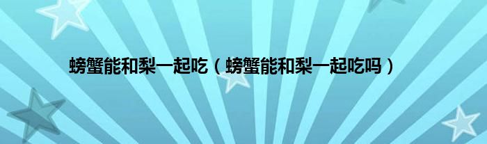 大家好,小常来为大家解答以上问题。螃蟹能和梨一起吃,螃蟹能和梨一起吃吗很多人还不知道,现在让我们一起来看看吧!