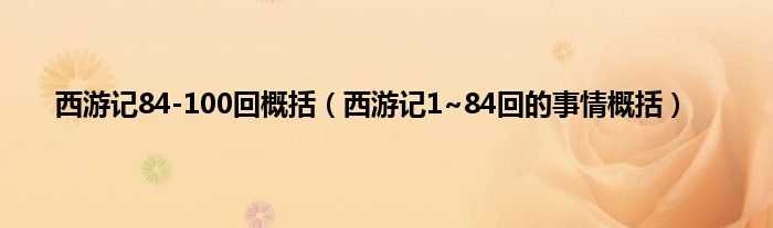大家好,小常来为大家解答以上问题。西游记84-100回概括,西游记1~84回的事情概括很多人还不知道,现在让我们一起来看看吧!