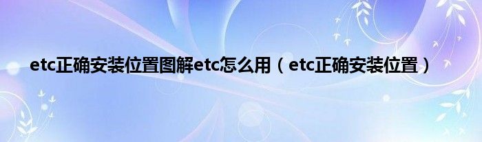 大家好,小常来为大家解答以上问题。etc正确安装位置图解etc怎么用,etc正确安装位置很多人还不知道,现在让我们一起来看看吧!