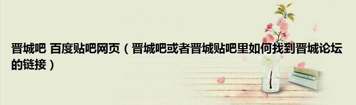 大家好,小常来为大家解答以上问题。晋城吧 百度贴吧网页,晋城吧或者晋城贴吧里如何找到晋城论坛的链接很多人还不知道,现在让我们一起来看看吧!