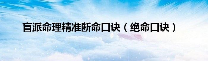 大家好,综合小编来为大家讲解下。盲派命理精准断命口诀,绝命口诀这个很多人还不知道,现在让我们一起来看看吧!