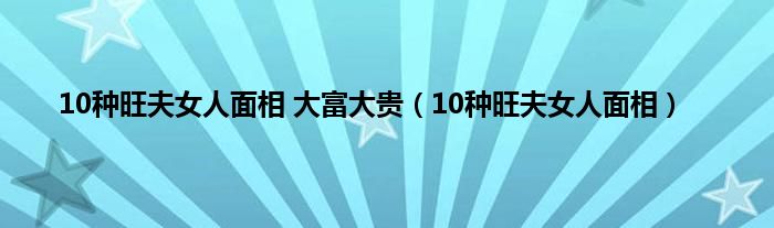 本文10种旺夫女人面相 大富大贵,10种旺夫女人面相到此分享完毕,希望对大家有所帮助。