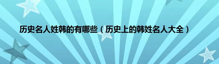 本文历史名人姓韩的有哪些,历史上的韩姓名人大全到此分享完毕,希望对大家有所帮助。