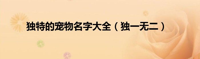 大家好,综合小编来为大家讲解下。独特的宠物名字大全,独一无二这个很多人还不知道,现在让我们一起来看看吧!