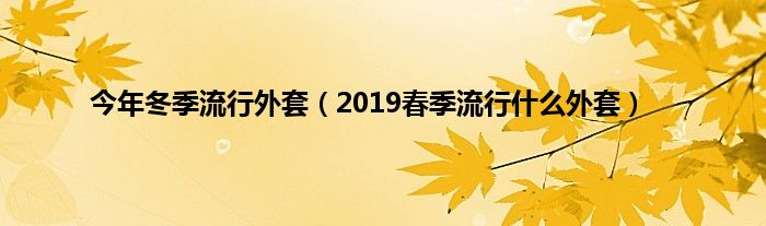 大家好,小科来为大家解答以上问题。今年冬季流行外套,2019春季流行什么外套很多人还不知道,现在让我们一起来看看吧!