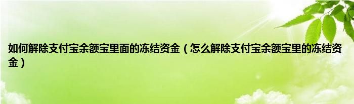 大家好,小常来为大家解答以上问题。如何解除支付宝余额宝里面的冻结资金,怎么解除支付宝余额宝里的冻结资金很多人还不知道,现在让我们一起来看看吧!