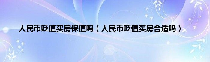 大家好,小常来为大家解答以上问题。人民币贬值买房保值吗,人民币贬值买房合适吗很多人还不知道,现在让我们一起来看看吧!