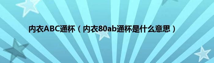 大家好,小科来为大家解答以上问题。内衣ABC通杯,内衣80ab通杯是什么意思很多人还不知道,现在让我们一起来看看吧!