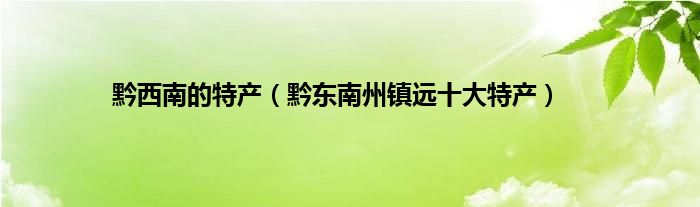 黔西南的特产(黔东南州镇远十大特产)