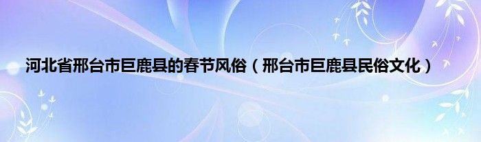 大家好,小常来为大家解答以上问题。河北省邢台市巨鹿县的春节风俗,邢台市巨鹿县民俗文化很多人还不知道,现在让我们一起来看看吧!