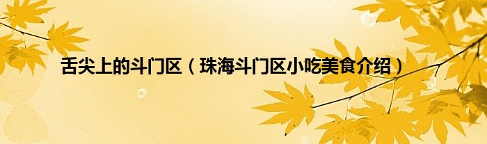 大家好,小常来为大家解答以上问题。舌尖上的斗门区,珠海斗门区小吃美食介绍很多人还不知道,现在让我们一起来看看吧!