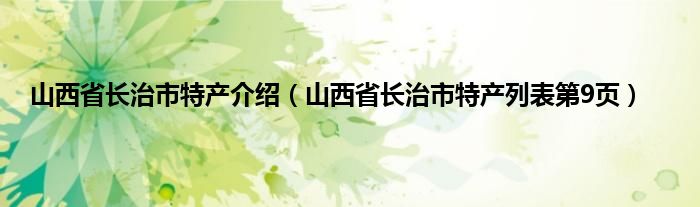 大家好,小常来为大家解答以上问题。山西省长治市特产介绍,山西省长治市特产列表第9页很多人还不知道,现在让我们一起来看看吧!