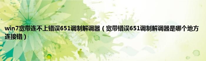 大家好,小常来为大家解答以上问题。win7宽带连不上错误651调制解调器,宽带错误651调制解调器是哪个地方连接错很多人还不知道,现在让我们一起来看看吧!