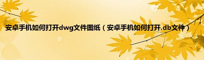 大家好,小常来为大家解答以上问题。安卓手机如何打开dwg文件图纸,安卓手机如何打开.db文件很多人还不知道,现在让我们一起来看看吧!