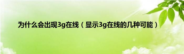 大家好,小常来为大家解答以上问题。为什么会出现3g在线,显示3g在线的几种可能很多人还不知道,现在让我们一起来看看吧!